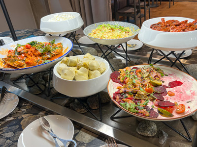 Obiadokolacje to zróżnicowane i efektowne menu bufetowe wzbogacone o wybór kolorowych i różnorodnych sałatek, ciast i świeżych owoców. Każdego dnia były do wyboru były zupełnie inne dania, różnorodne i naprawdę było w czym wybierać. Myślę, że nawet najbardziej wymagający goście znajdą tiu coś dla siebie.